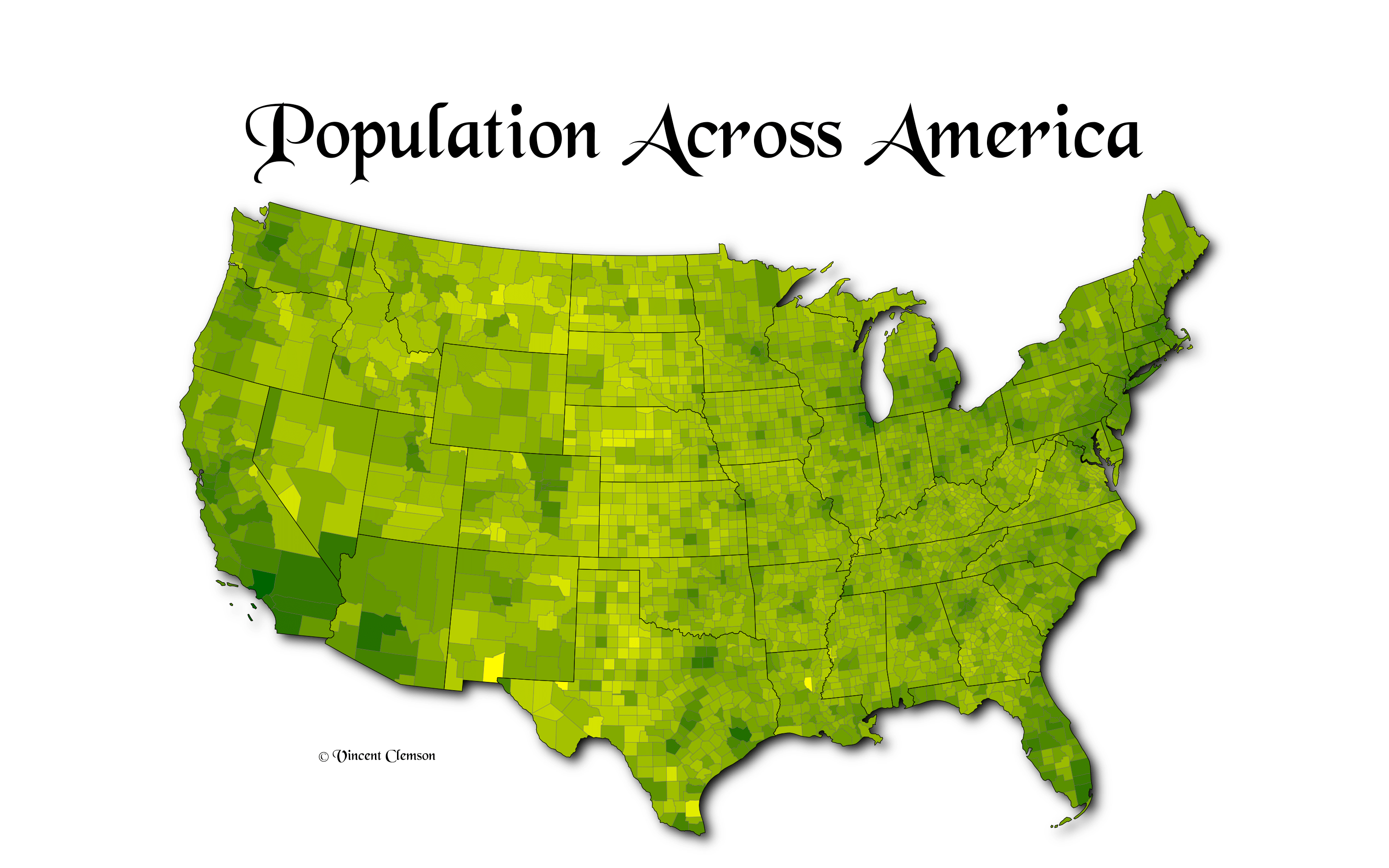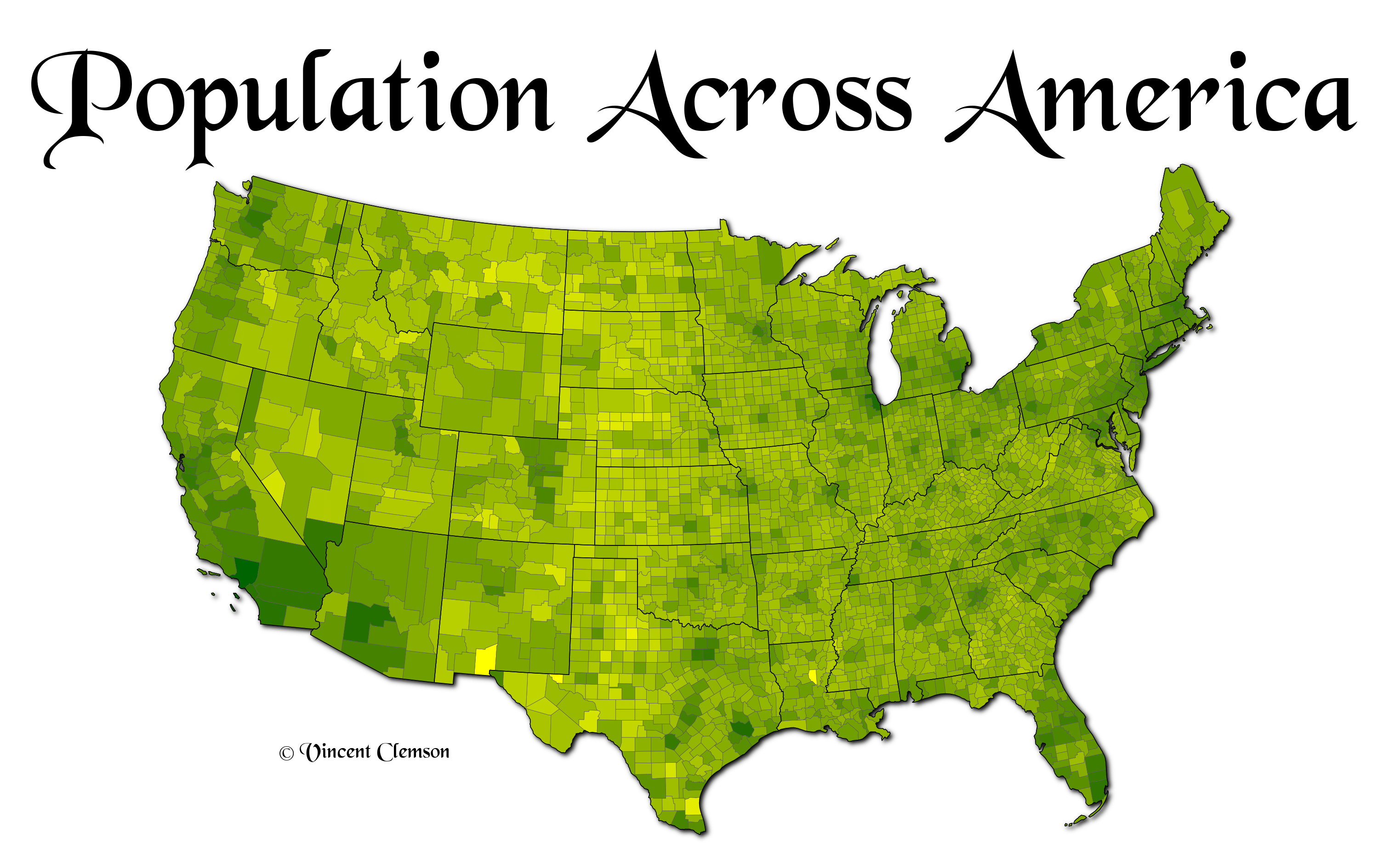 Figure 1: A choropleth map visualizing the population within each county of the continental United States in 2015.