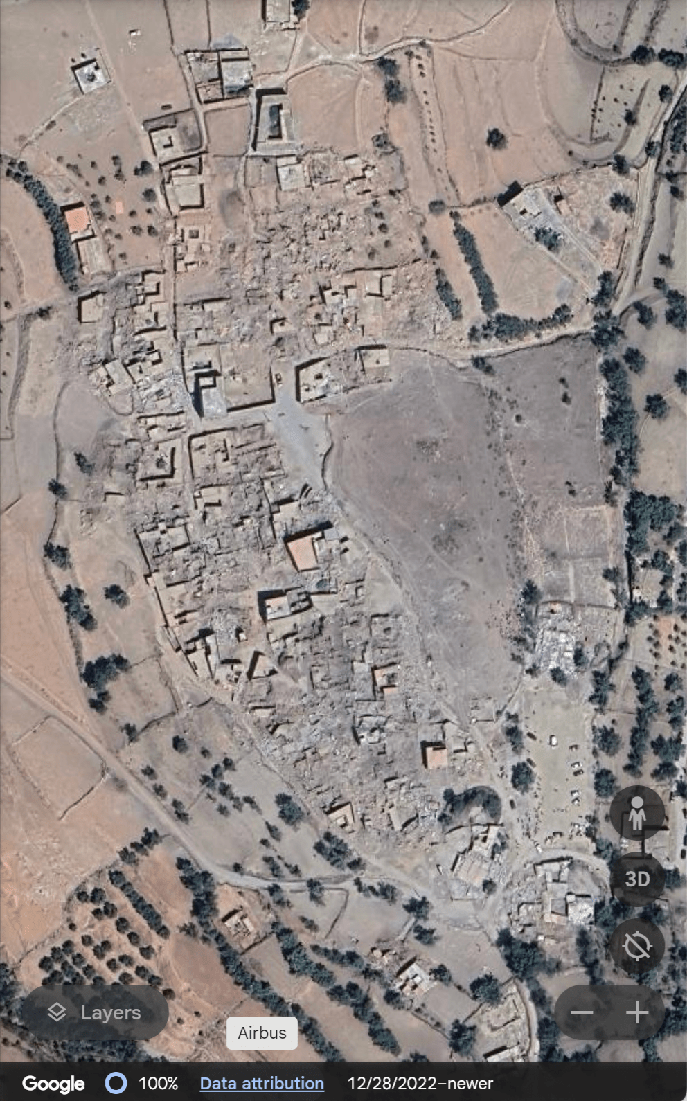 Figure 5: Post-event updated Google Earth screen capture of Tafeghaghte, Morocco. Updated sometime after 09/16/23. Source.